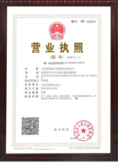 自動(dòng)繞線扎線機(jī)生產(chǎn)廠家誠焱營業(yè)執(zhí)照附本