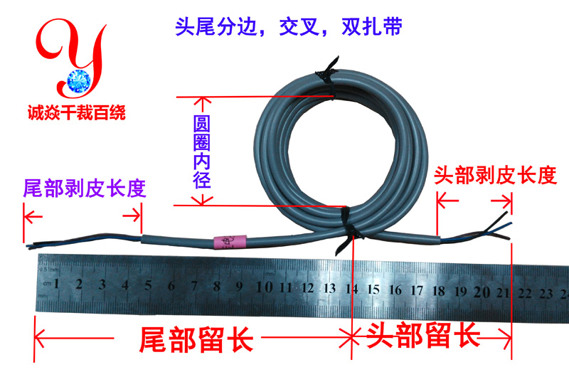 特點(diǎn):將大卷線分卷成小卷,自動(dòng)裁切剝皮繞線扎線,成品為圓圈雙扎,圓圈內(nèi)徑出廠固定。頭尾留長(zhǎng)在150mm以內(nèi)。